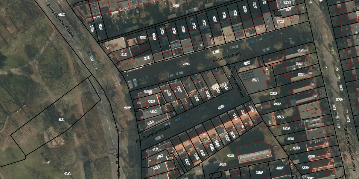 Gebruik de zoekbalk of klik op een perceel om informatie over het perceel te bekijken.