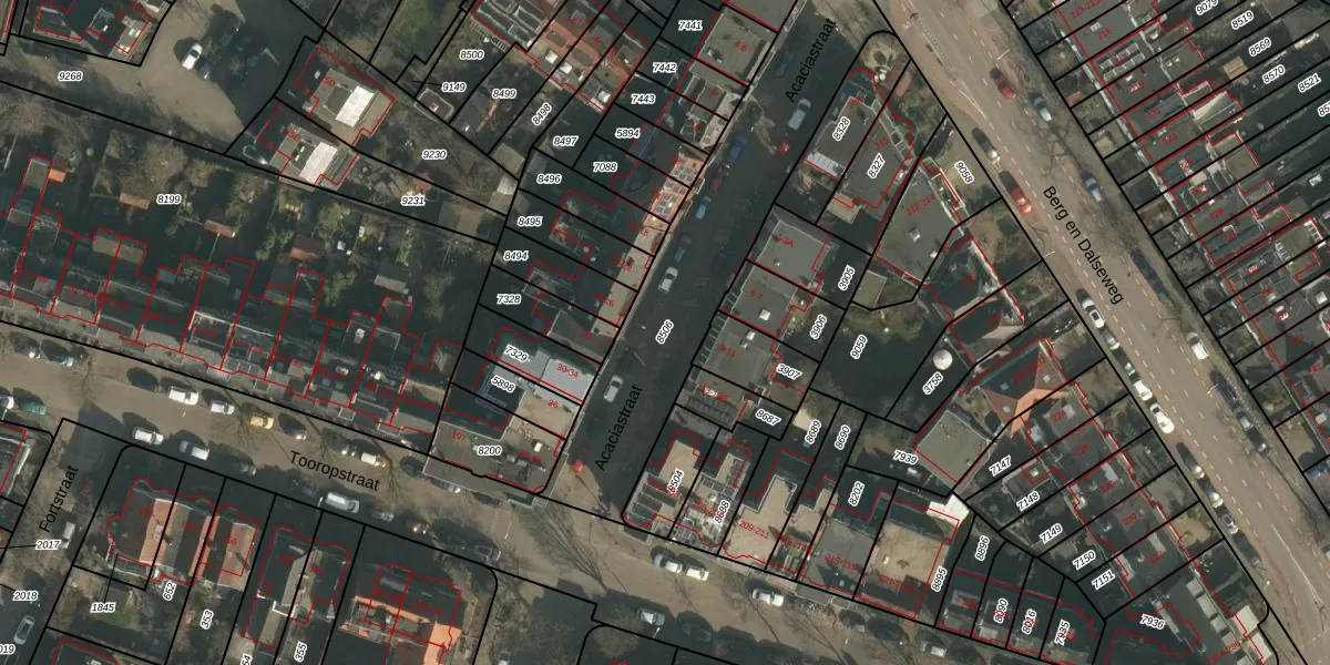 Gebruik de zoekbalk of klik op een perceel om informatie over het perceel te bekijken.