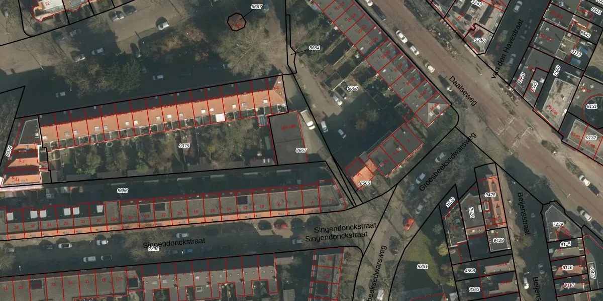Gebruik de zoekbalk of klik op een perceel om informatie over het perceel te bekijken.