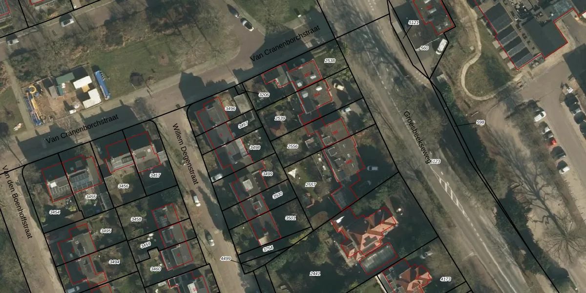 Gebruik de zoekbalk of klik op een perceel om informatie over het perceel te bekijken.