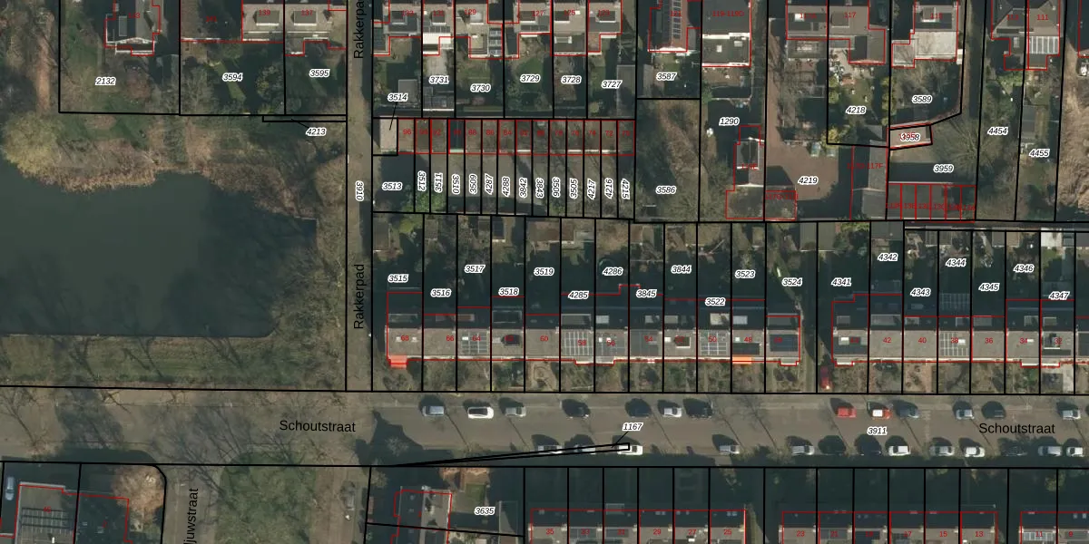 Gebruik de zoekbalk of klik op een perceel om informatie over het perceel te bekijken.