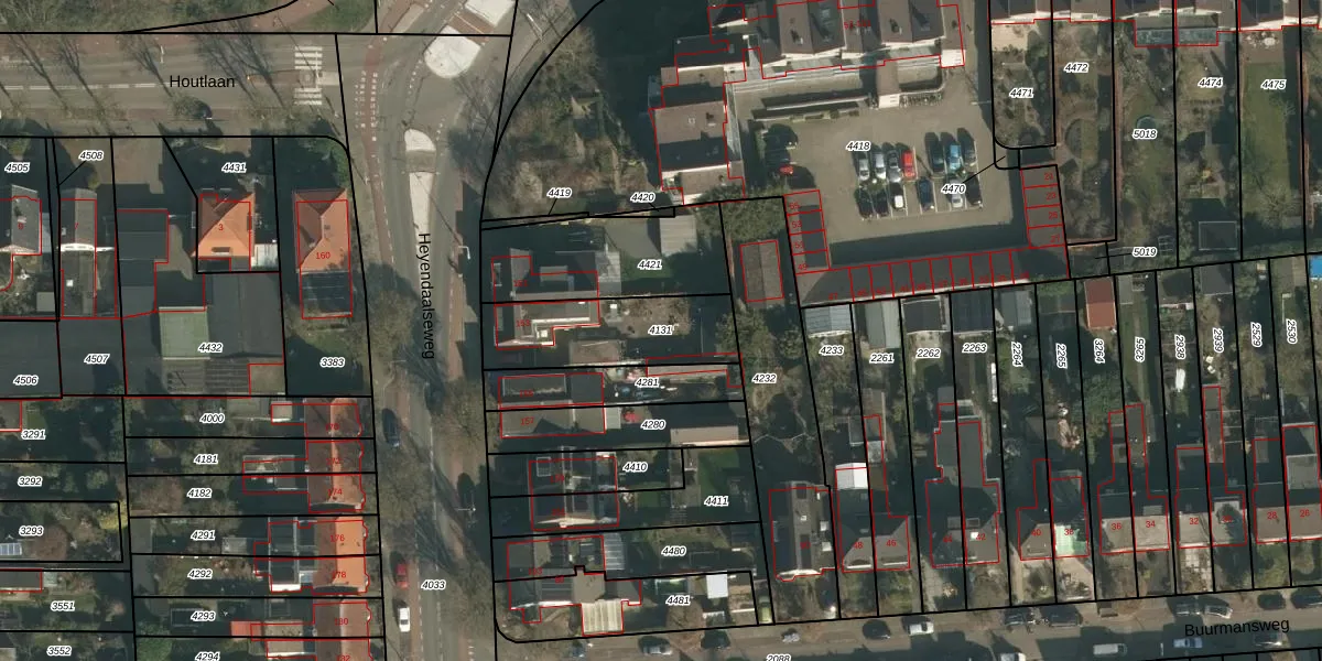 Gebruik de zoekbalk of klik op een perceel om informatie over het perceel te bekijken.