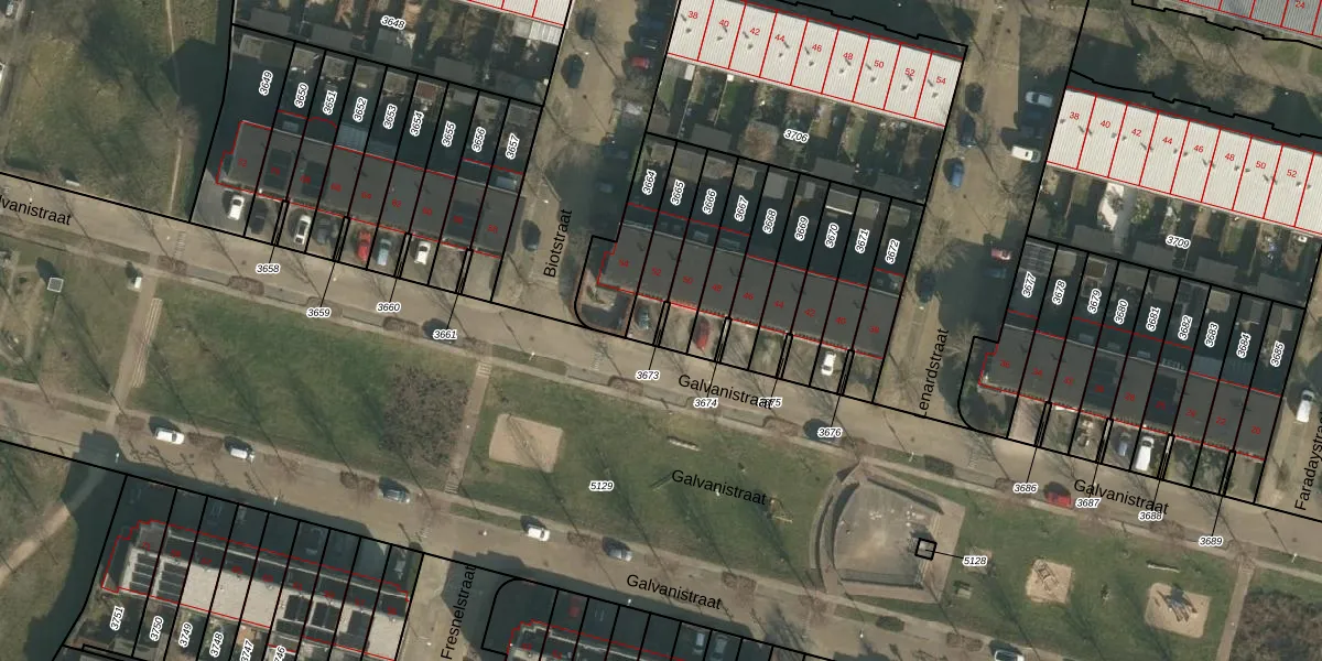 Gebruik de zoekbalk of klik op een perceel om informatie over het perceel te bekijken.