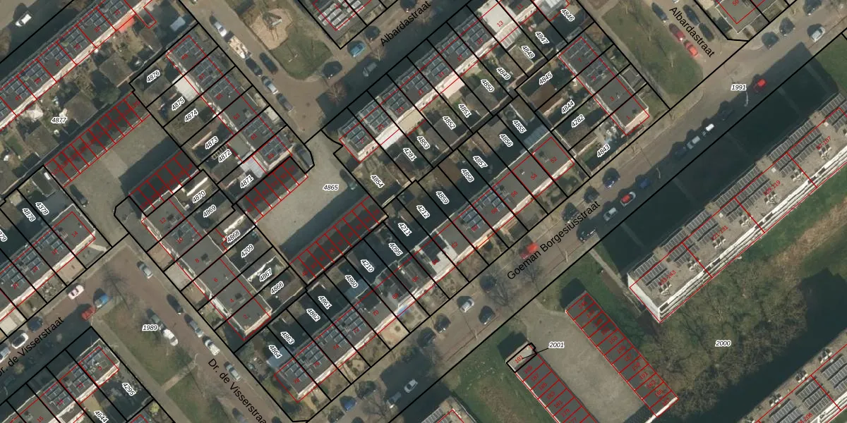 Gebruik de zoekbalk of klik op een perceel om informatie over het perceel te bekijken.
