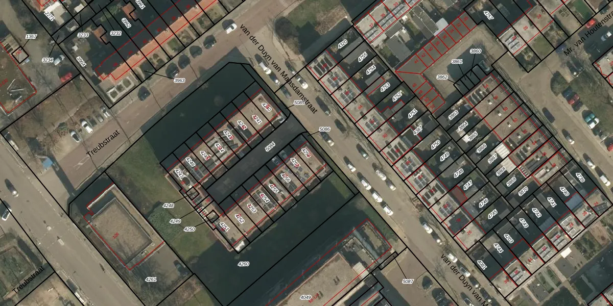 Gebruik de zoekbalk of klik op een perceel om informatie over het perceel te bekijken.