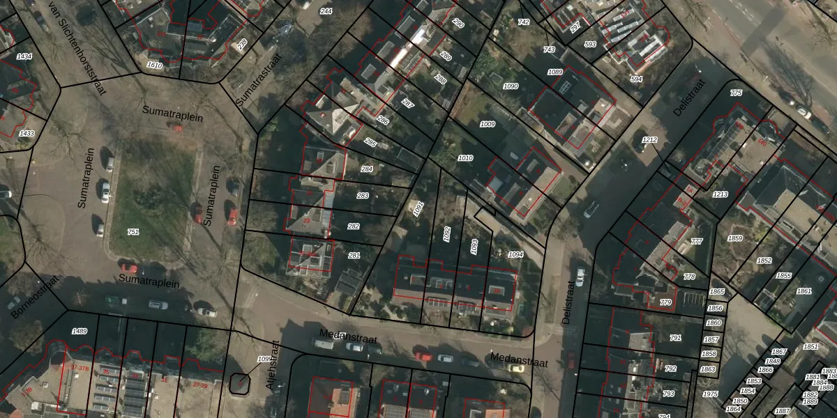 Gebruik de zoekbalk of klik op een perceel om informatie over het perceel te bekijken.