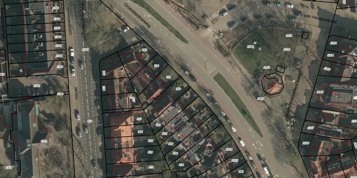 Gebruik de zoekbalk of klik op een perceel om informatie over het perceel te bekijken.