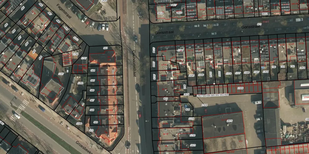 Gebruik de zoekbalk of klik op een perceel om informatie over het perceel te bekijken.