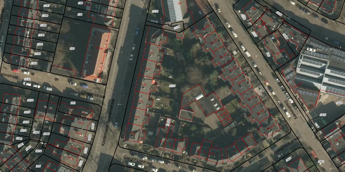Gebruik de zoekbalk of klik op een perceel om informatie over het perceel te bekijken.