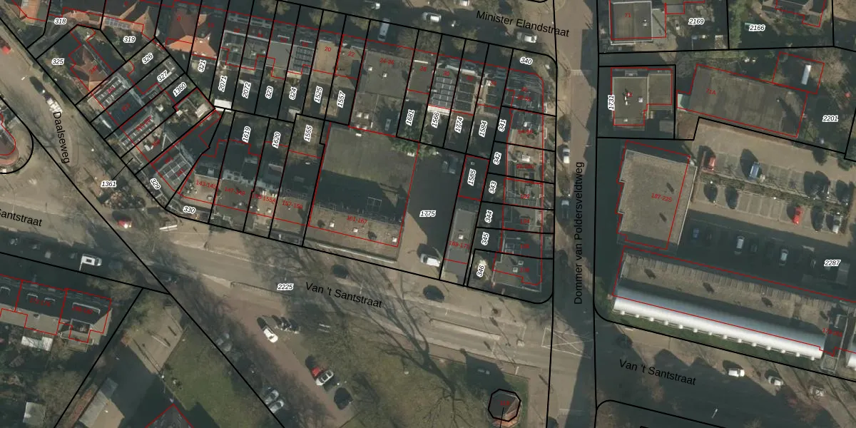 Gebruik de zoekbalk of klik op een perceel om informatie over het perceel te bekijken.
