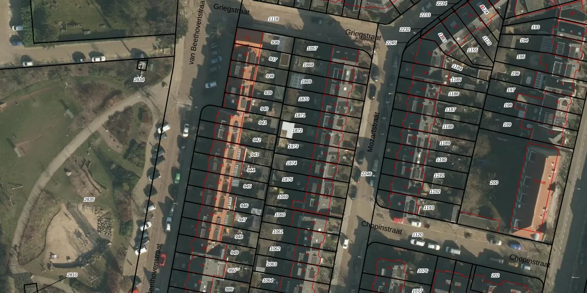 Gebruik de zoekbalk of klik op een perceel om informatie over het perceel te bekijken.