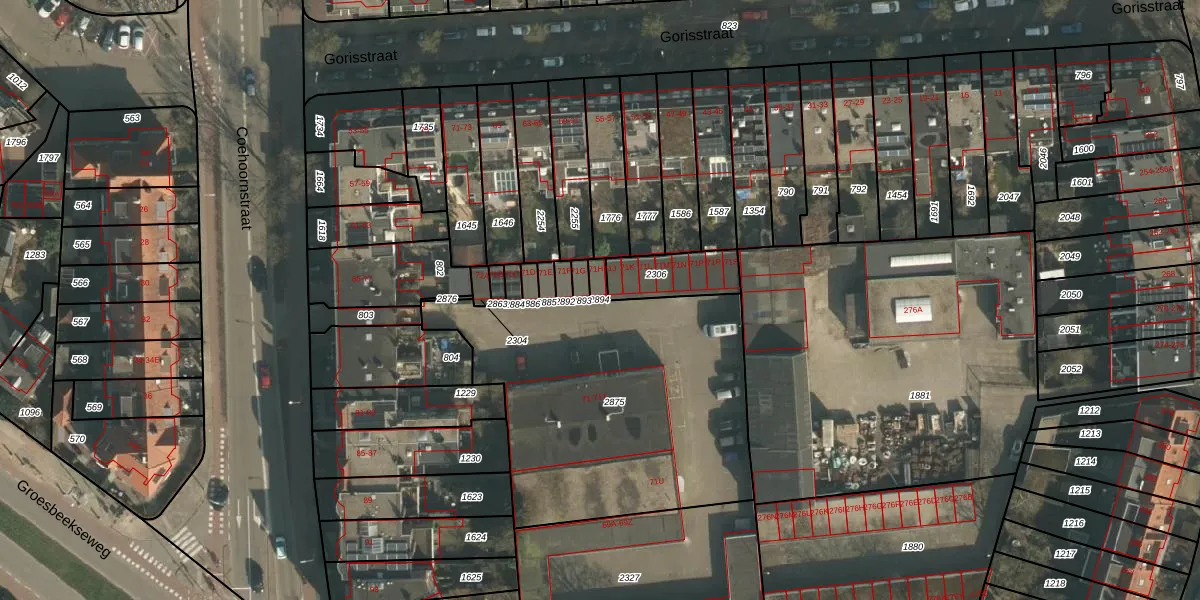 Gebruik de zoekbalk of klik op een perceel om informatie over het perceel te bekijken.