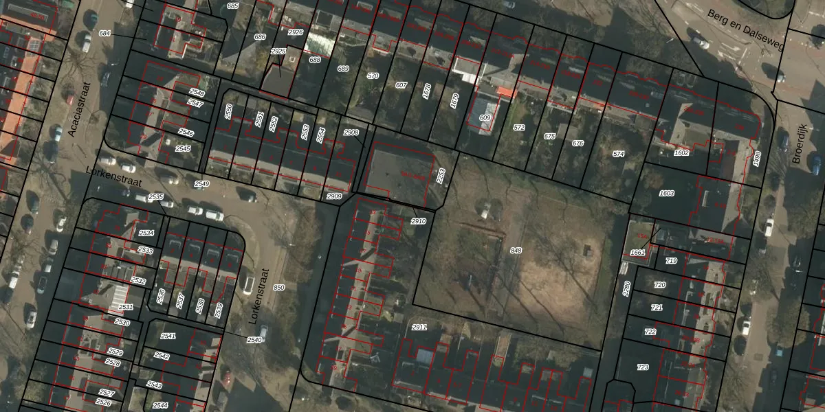 Gebruik de zoekbalk of klik op een perceel om informatie over het perceel te bekijken.