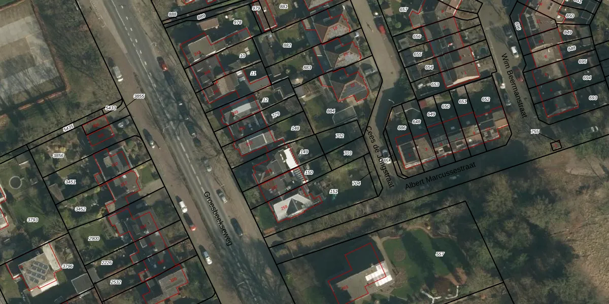 Gebruik de zoekbalk of klik op een perceel om informatie over het perceel te bekijken.