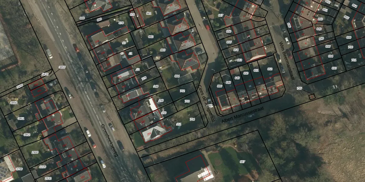 Gebruik de zoekbalk of klik op een perceel om informatie over het perceel te bekijken.