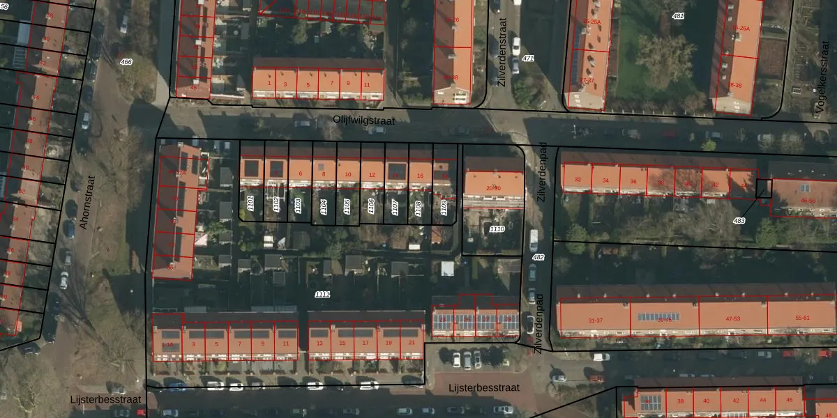 Gebruik de zoekbalk of klik op een perceel om informatie over het perceel te bekijken.
