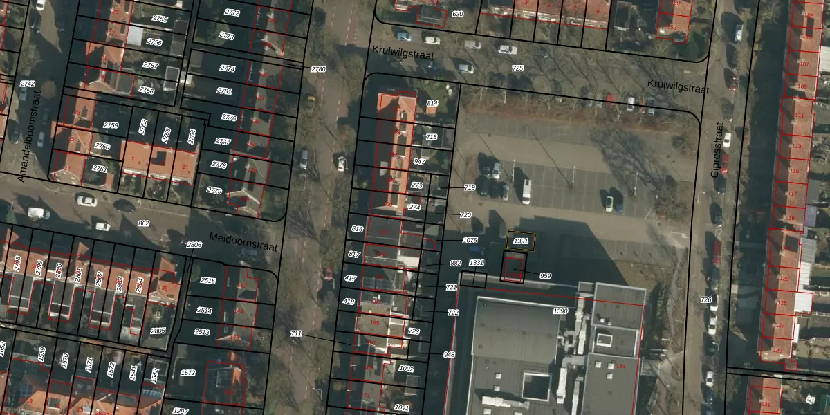 Gebruik de zoekbalk of klik op een perceel om informatie over het perceel te bekijken.