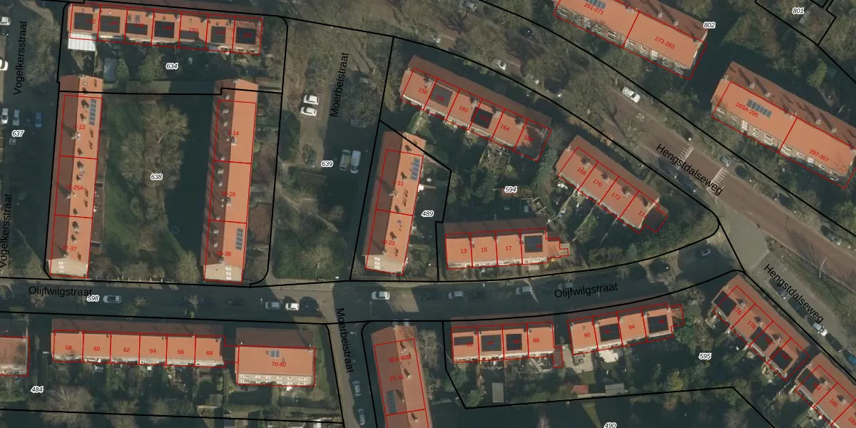 Gebruik de zoekbalk of klik op een perceel om informatie over het perceel te bekijken.