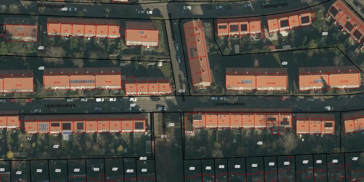 Gebruik de zoekbalk of klik op een perceel om informatie over het perceel te bekijken.