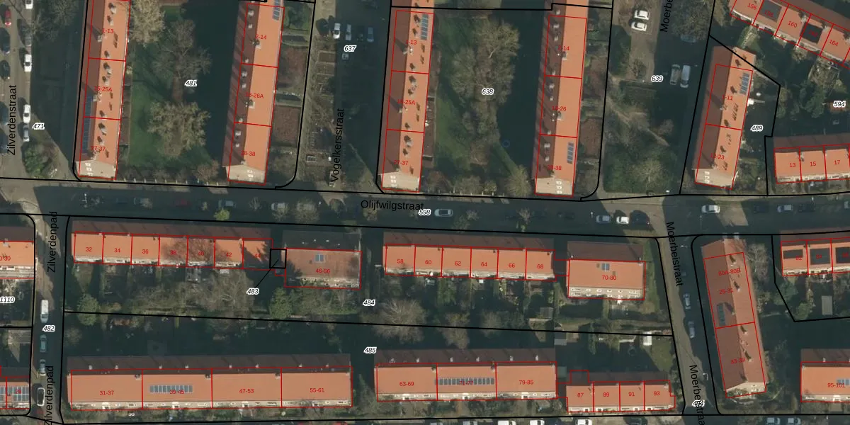 Gebruik de zoekbalk of klik op een perceel om informatie over het perceel te bekijken.