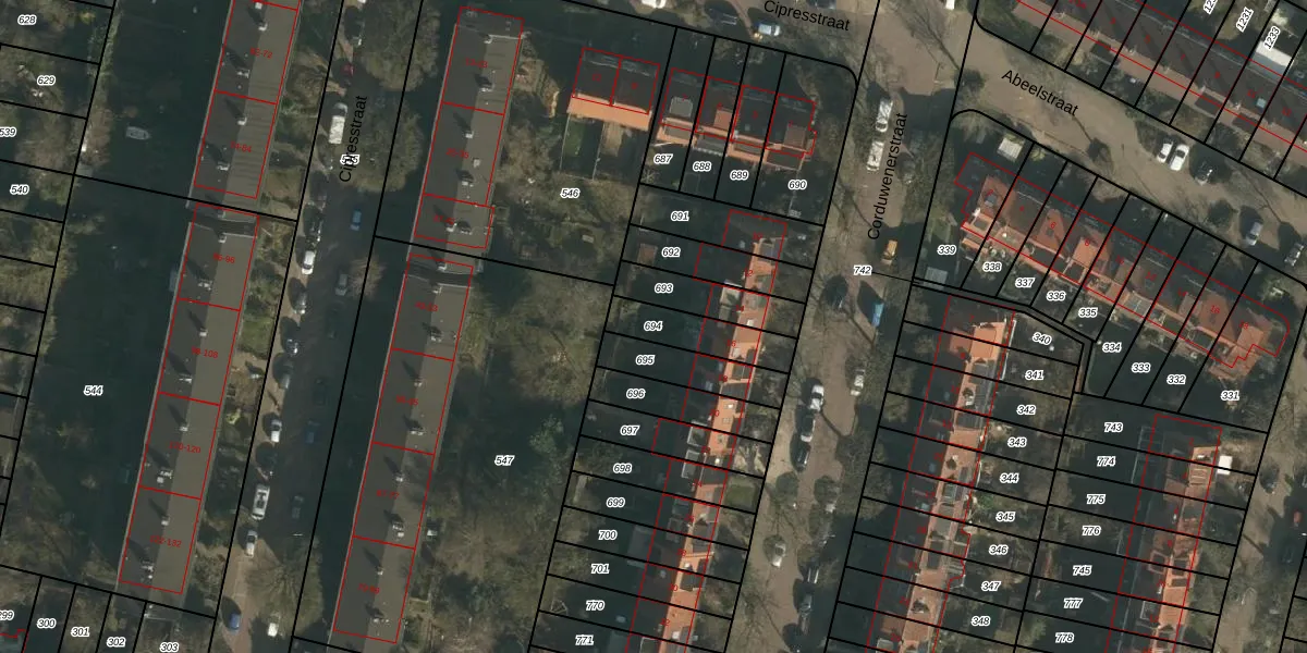 Gebruik de zoekbalk of klik op een perceel om informatie over het perceel te bekijken.