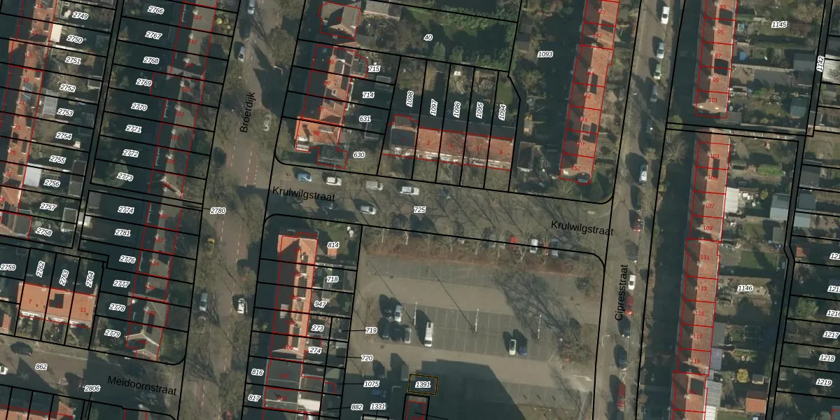 Gebruik de zoekbalk of klik op een perceel om informatie over het perceel te bekijken.