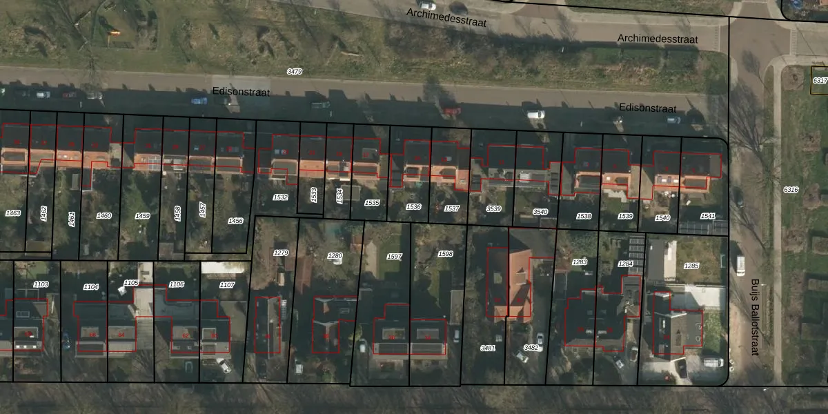 Gebruik de zoekbalk of klik op een perceel om informatie over het perceel te bekijken.