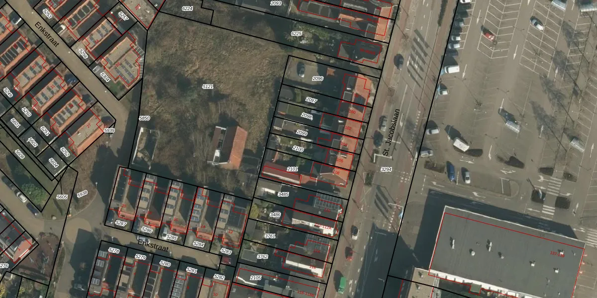 Gebruik de zoekbalk of klik op een perceel om informatie over het perceel te bekijken.