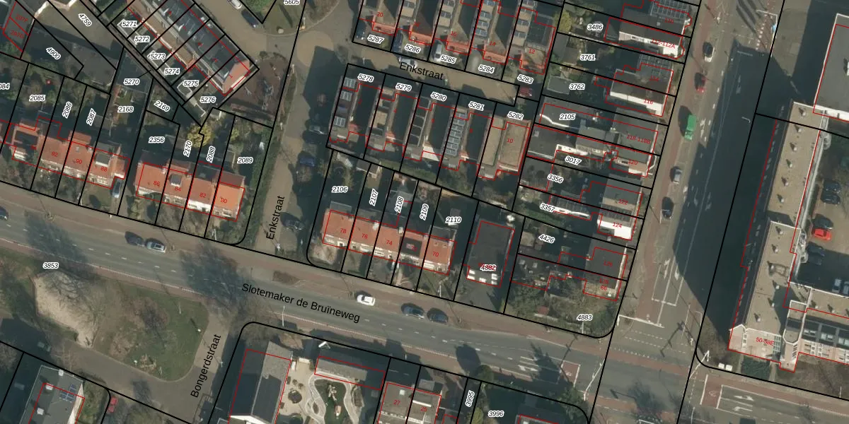Gebruik de zoekbalk of klik op een perceel om informatie over het perceel te bekijken.