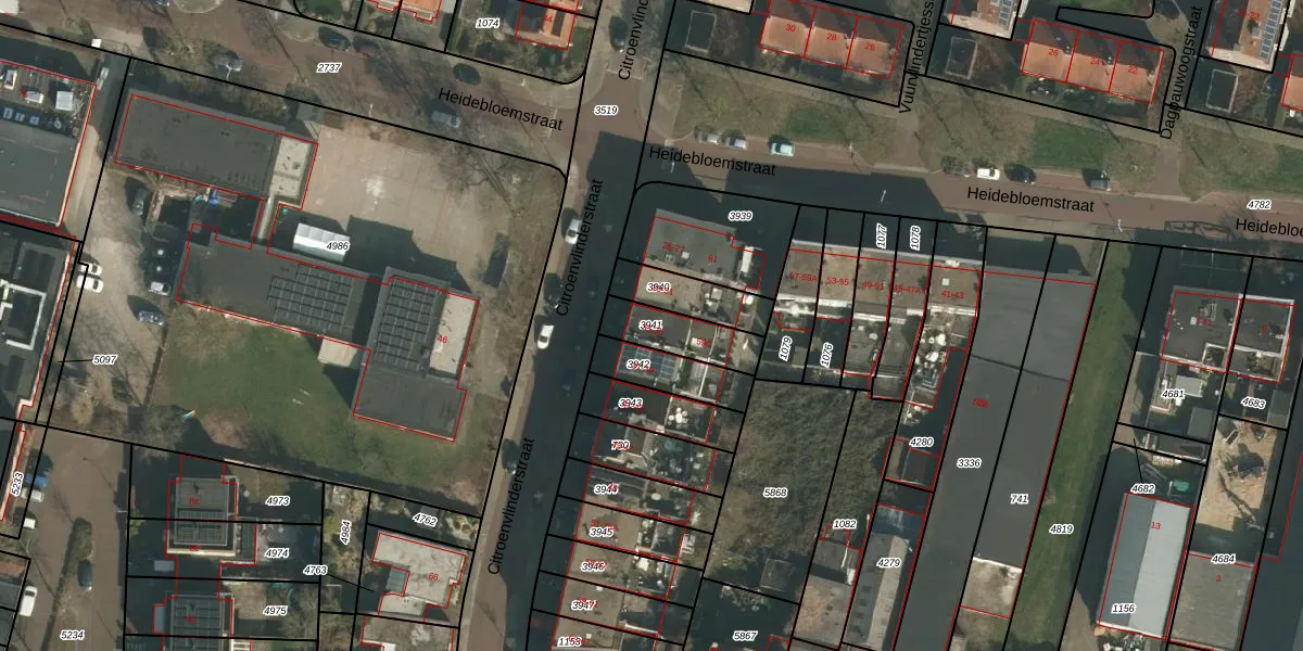 Gebruik de zoekbalk of klik op een perceel om informatie over het perceel te bekijken.