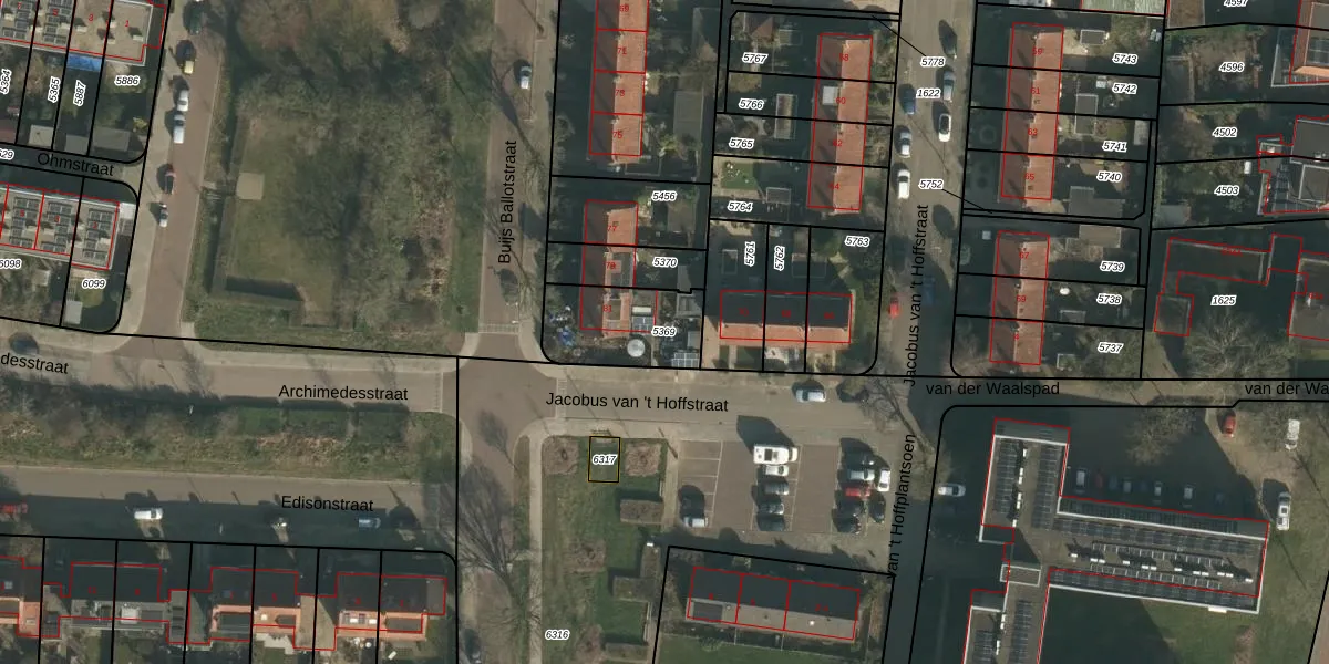 Gebruik de zoekbalk of klik op een perceel om informatie over het perceel te bekijken.