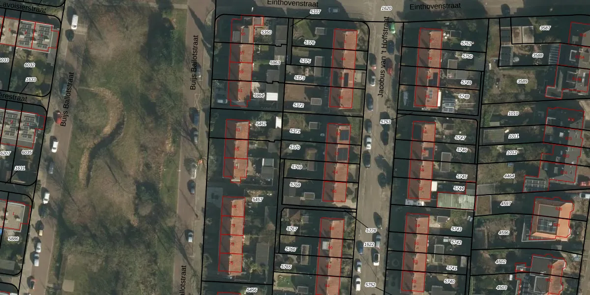 Gebruik de zoekbalk of klik op een perceel om informatie over het perceel te bekijken.
