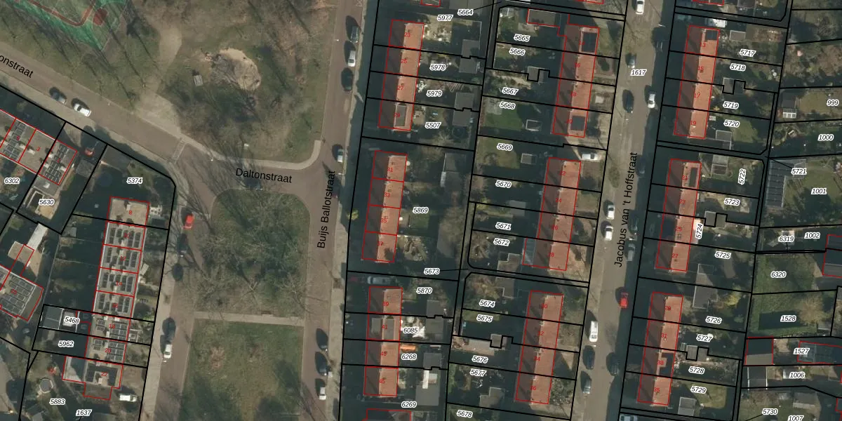 Gebruik de zoekbalk of klik op een perceel om informatie over het perceel te bekijken.