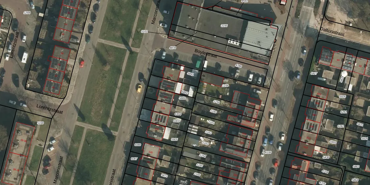 Gebruik de zoekbalk of klik op een perceel om informatie over het perceel te bekijken.