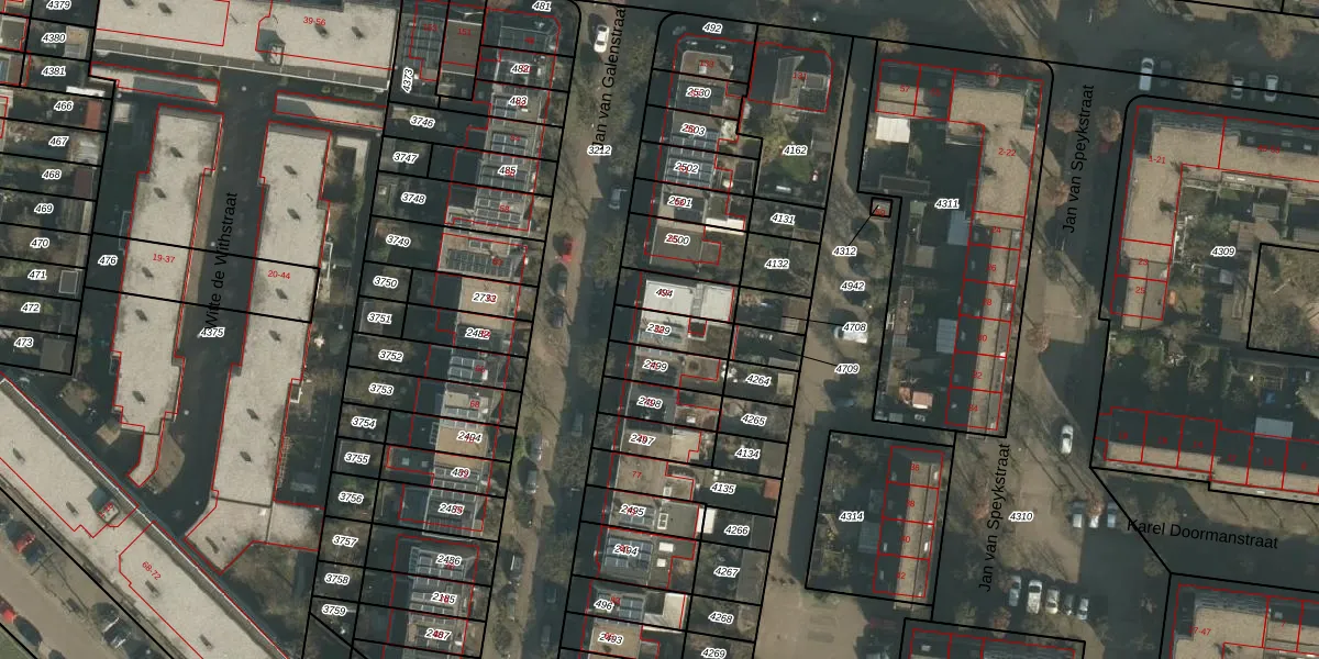 Gebruik de zoekbalk of klik op een perceel om informatie over het perceel te bekijken.