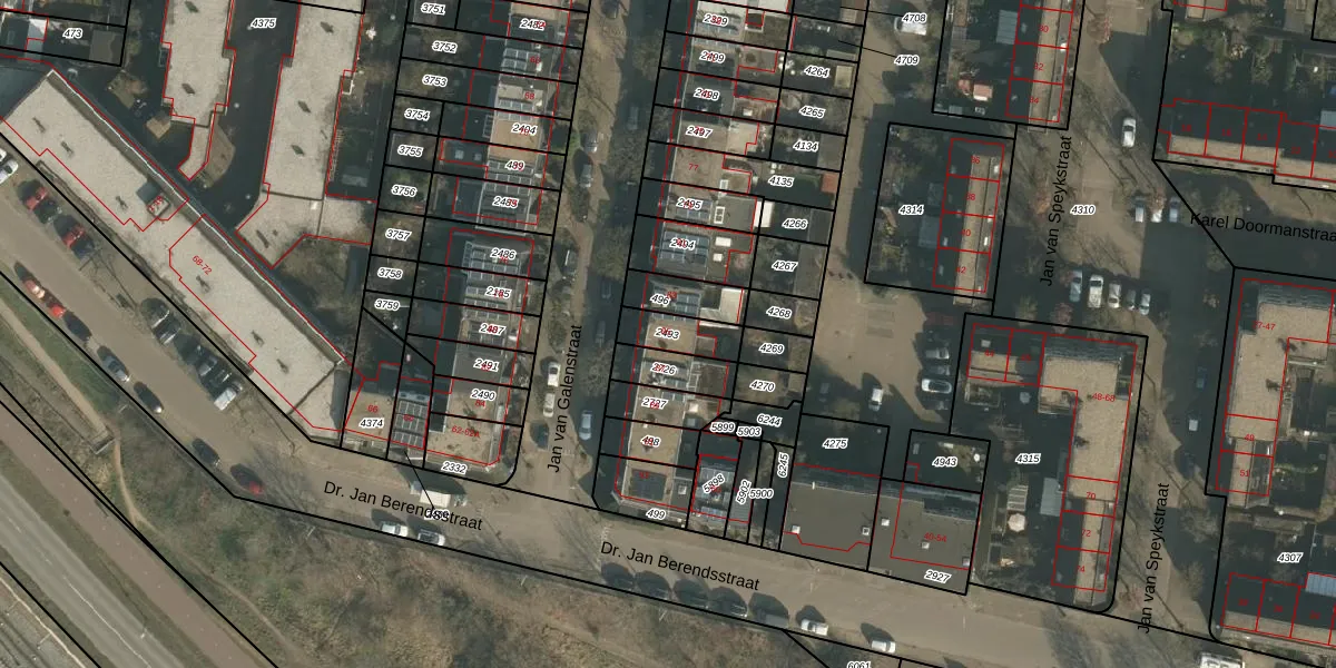 Gebruik de zoekbalk of klik op een perceel om informatie over het perceel te bekijken.