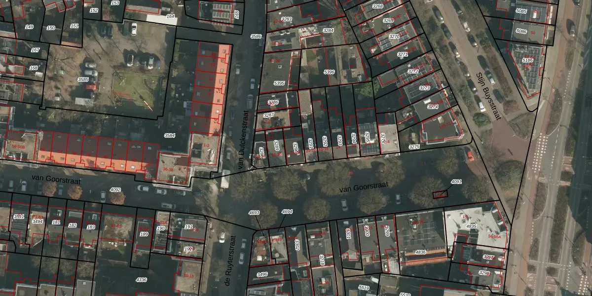 Gebruik de zoekbalk of klik op een perceel om informatie over het perceel te bekijken.