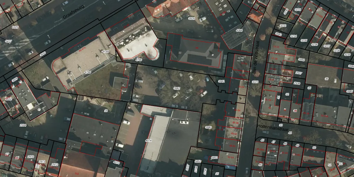 Gebruik de zoekbalk of klik op een perceel om informatie over het perceel te bekijken.