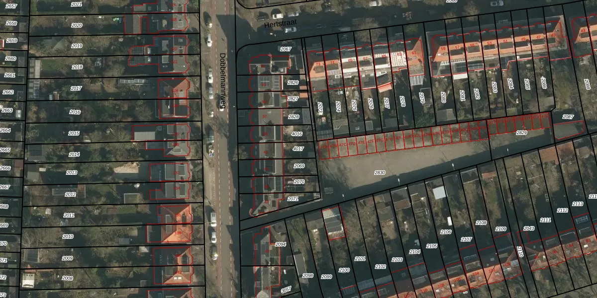 Gebruik de zoekbalk of klik op een perceel om informatie over het perceel te bekijken.