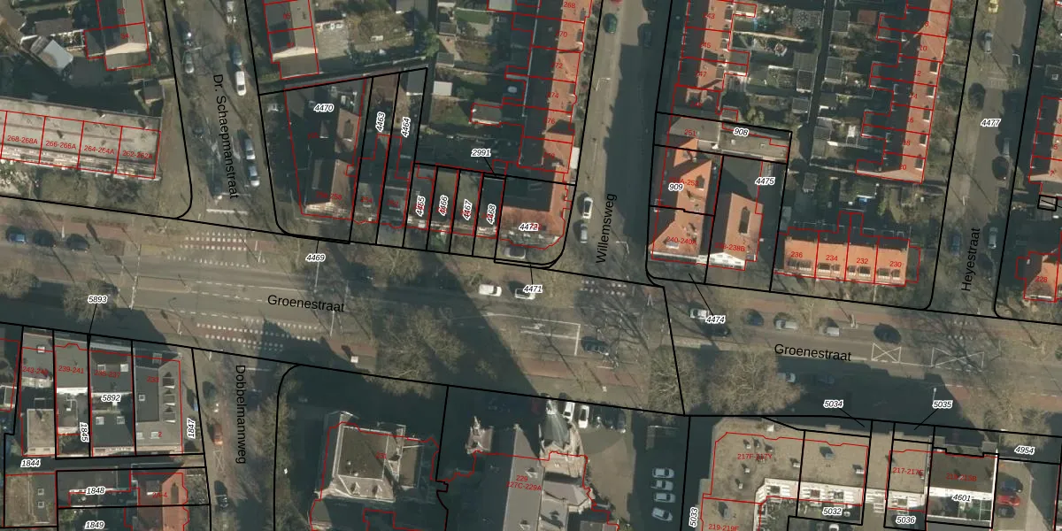 Gebruik de zoekbalk of klik op een perceel om informatie over het perceel te bekijken.