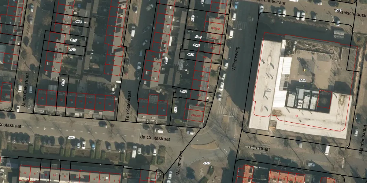 Gebruik de zoekbalk of klik op een perceel om informatie over het perceel te bekijken.