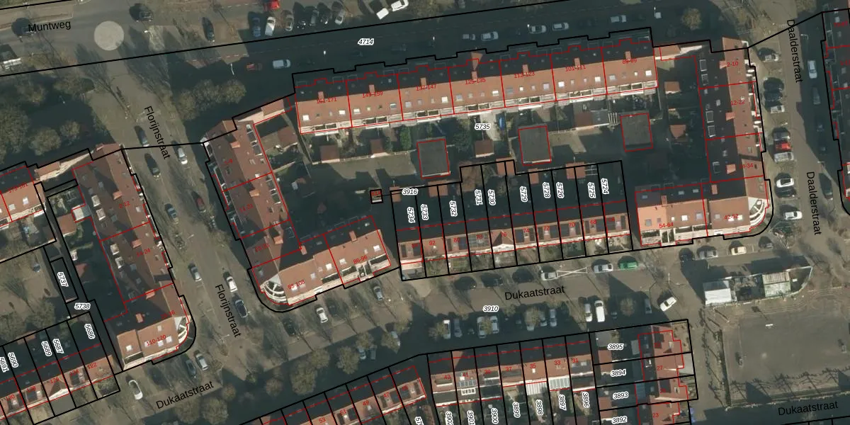 Gebruik de zoekbalk of klik op een perceel om informatie over het perceel te bekijken.