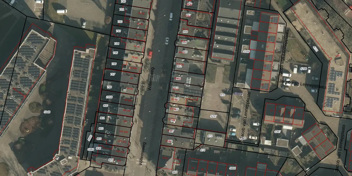 Gebruik de zoekbalk of klik op een perceel om informatie over het perceel te bekijken.