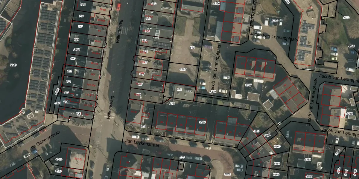 Gebruik de zoekbalk of klik op een perceel om informatie over het perceel te bekijken.
