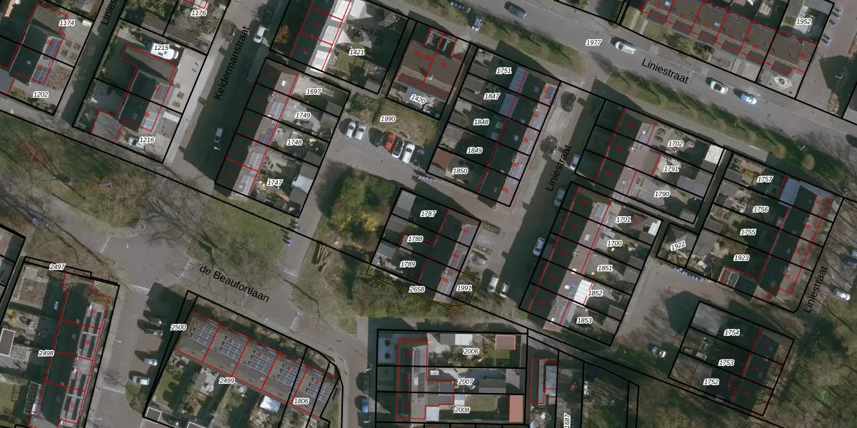Gebruik de zoekbalk of klik op een perceel om informatie over het perceel te bekijken.
