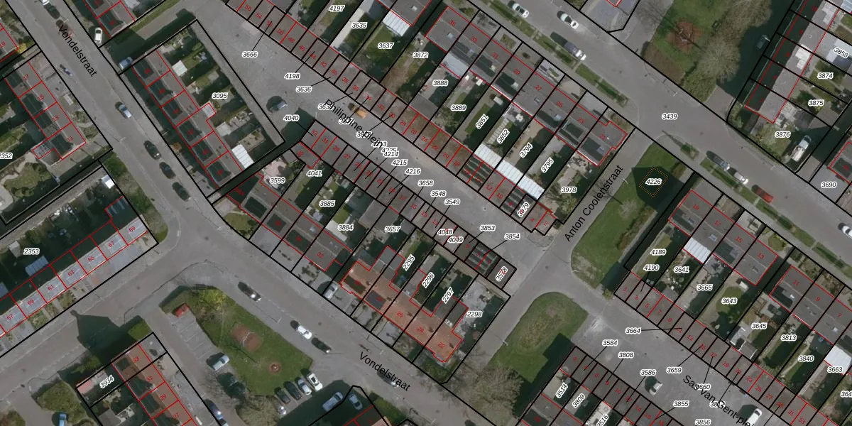 Gebruik de zoekbalk of klik op een perceel om informatie over het perceel te bekijken.