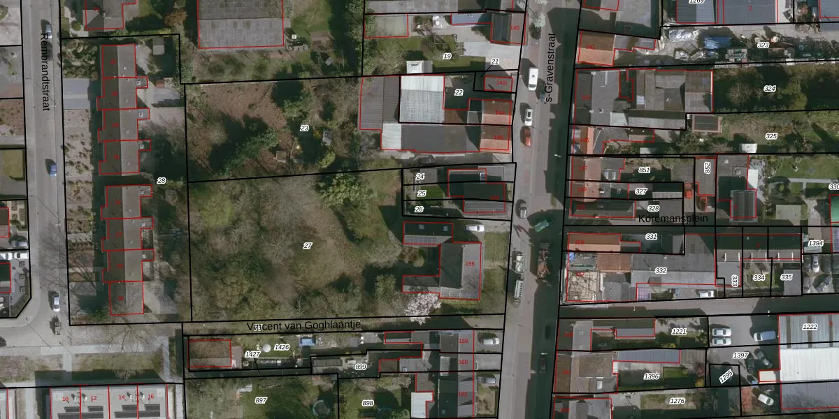 Gebruik de zoekbalk of klik op een perceel om informatie over het perceel te bekijken.