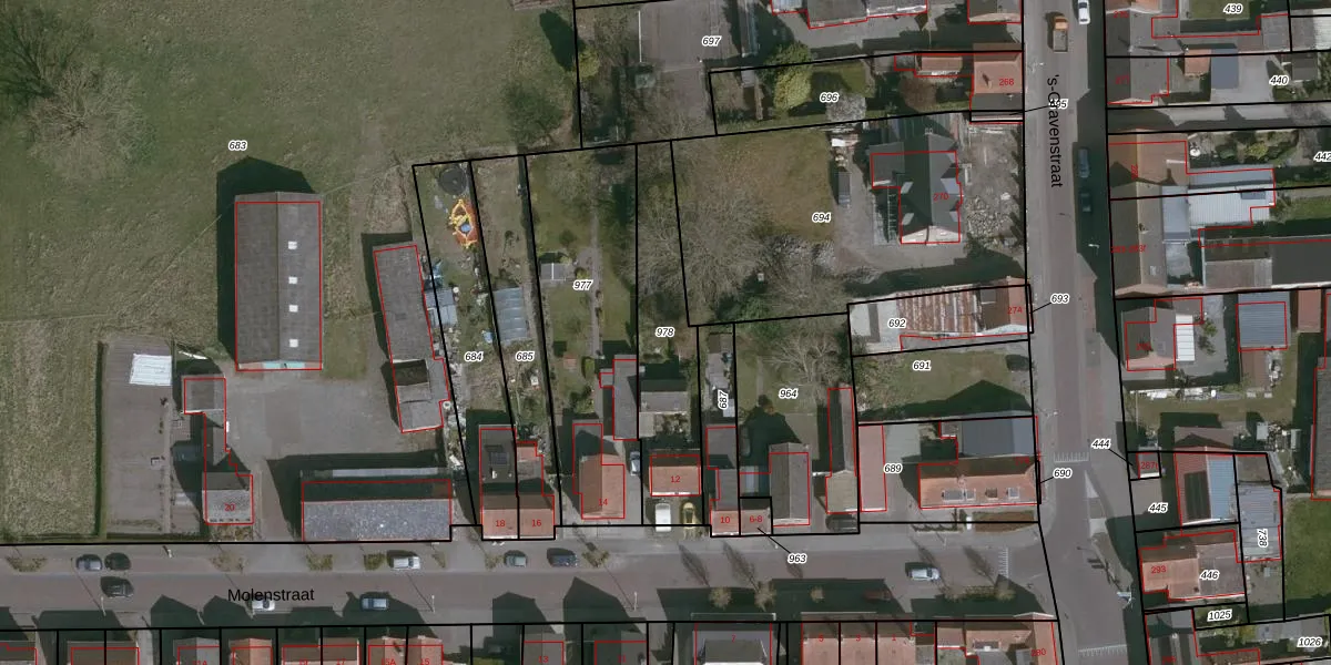 Gebruik de zoekbalk of klik op een perceel om informatie over het perceel te bekijken.