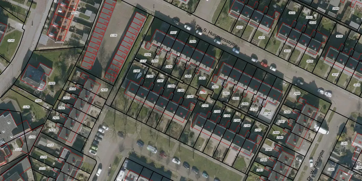 Gebruik de zoekbalk of klik op een perceel om informatie over het perceel te bekijken.