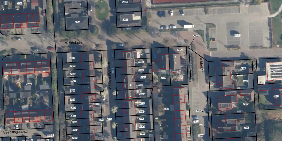 Gebruik de zoekbalk of klik op een perceel om informatie over het perceel te bekijken.